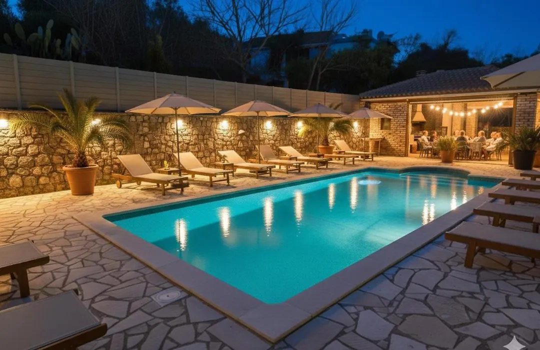 Deze 4-badkamer villa heeft een locatie op 4 km van Loco en op 3 km van de Trailriders. Dit vakantiehuis ligt een paar momenten van culturele bezienswaardigheden zoals National Gallery Annex of Corfu. Deze 4-slaapkamer woning is op 10 minuten rijden vanaf de gezinsvriendelijke Corcyra Beach watersports gelegen.